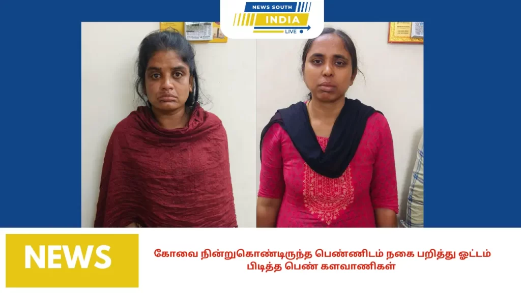 கோவை பீளமேடு எல்லைய்தோட்டம் பகுதியைச் சேர்ந்த கீதாமணி (54) என்பவர் தனது வீட்டில் தன்னுடைய நாய்க் குட்டியோடு வாசலில் நின்று கொண்டு இருந்த போது, இரு பெண்கள் இருசக்கர வாகனத்தில் வந்து அவரிடம் விலாசம் கேட்பது போன்று பேச்சுக் கொடுத்து உள்ளனர்.