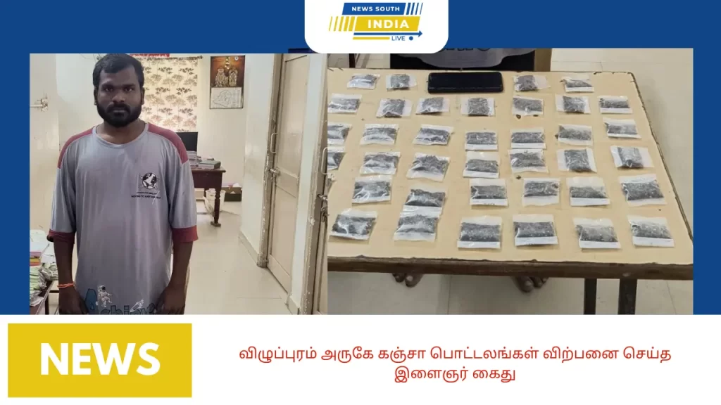 விழுப்புரம் தாலுக்கா காவல் நிலைய போலீசார்க்கு கிடைத்த தகவலின் பேரில் இன்று அவரை நோட்டமிட்டு பிடித்து அவர் வைத்திருந்த சின்ன சின்ன பாக்கெட் பொட்டலங்களாக வைத்திருந்த 200 கிராம் கஞ்சா வை போலீசார் பறிமுதல் செய்து நவீன் குமாரை கைது செய்துள்ளனர்